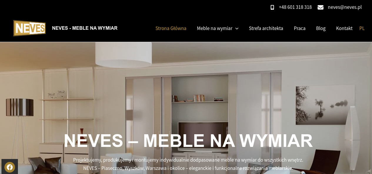 NEVES to firma specjalizująca się w projektowaniu, produkcji i montażu mebli na wymiar, która działa na rynku od 1989 roku.